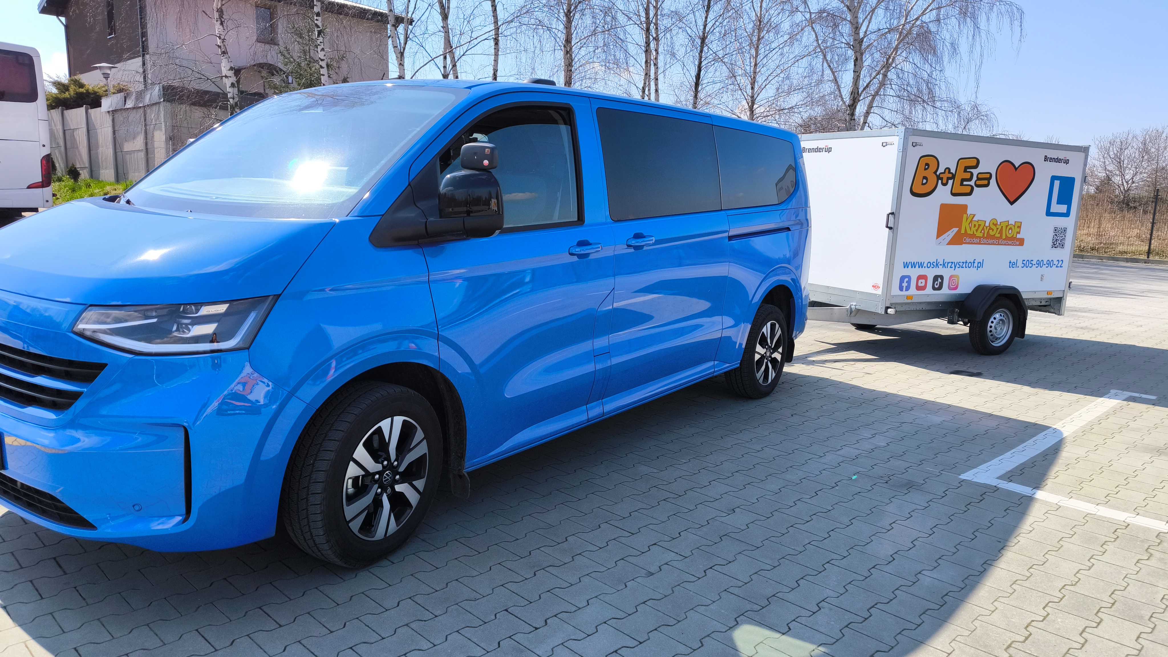 Cena kursu zawiera 15 godzin jazd najnowszym VW Caravelle z automatyczną skrzynią biegów z przyczepą.